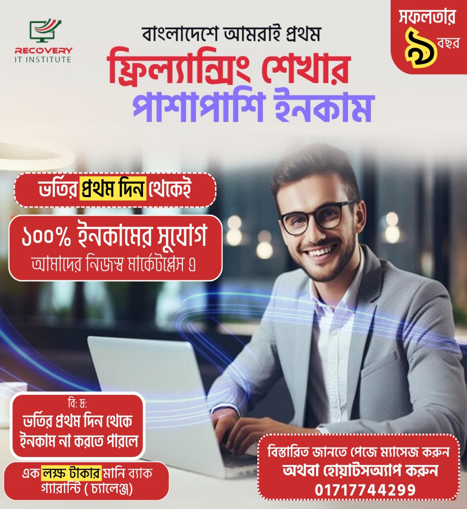 বাংলাদেশে রিকভারি আইটি প্রথম ,ভর্তির প্রথম দিন থেকে ইনকামের পাশাপাশি স্কিল ডেভেলপ করার সুবর্ণ সুযোগ।