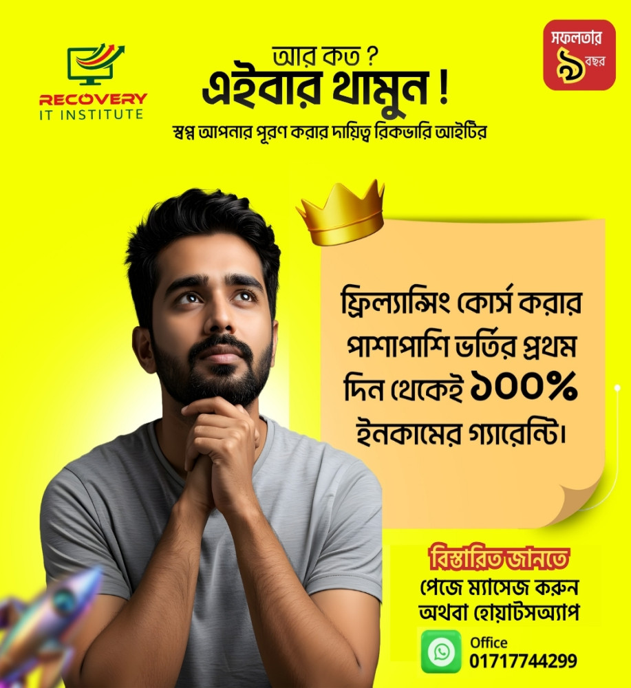 বাংলাদেশে রিকভারি আইটি প্রথম ,ভর্তির প্রথম দিন থেকে ইনকামের পাশাপাশি স্কিল ডেভেলপ করার সুবর্ণ সুযোগ।